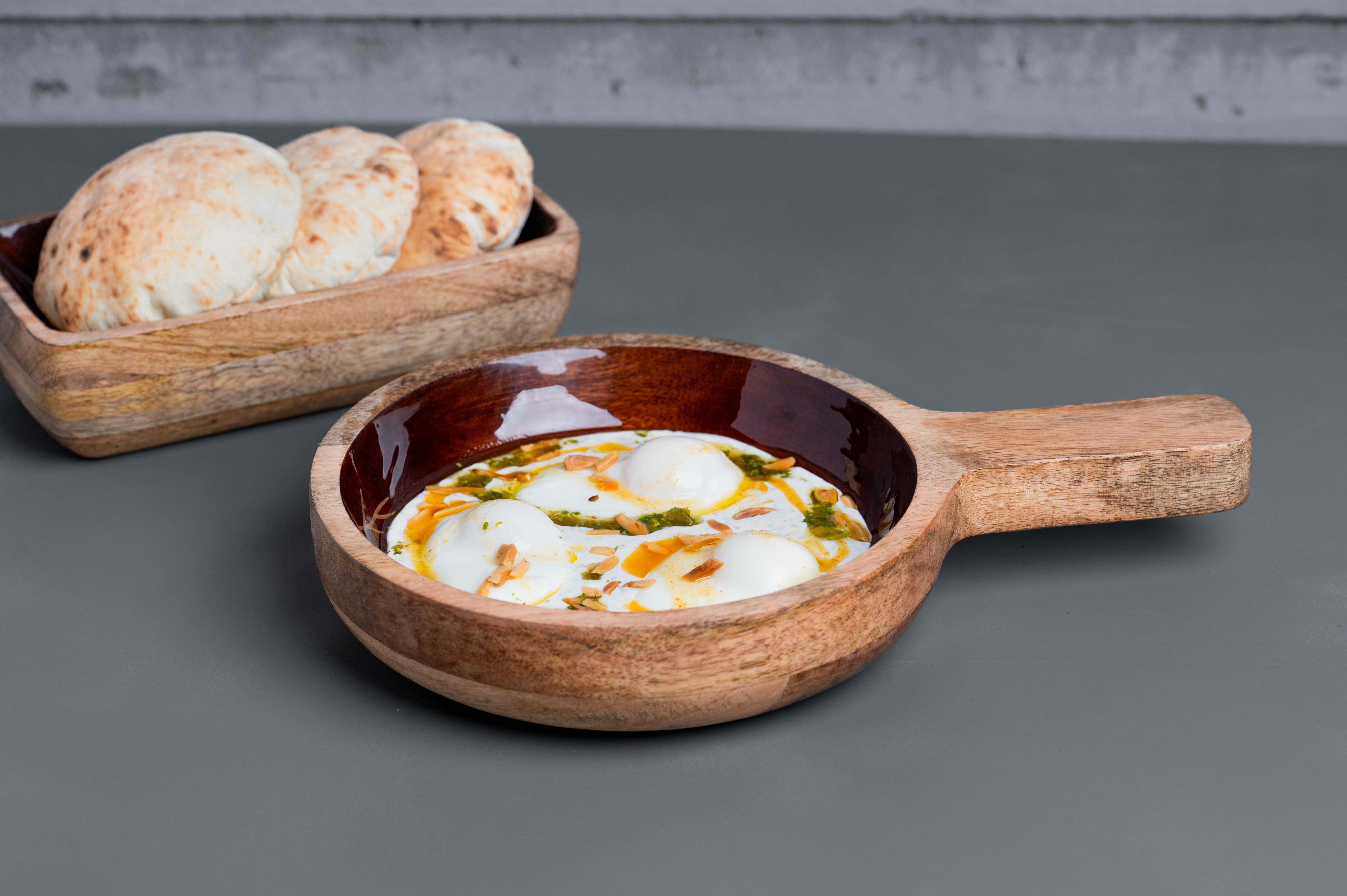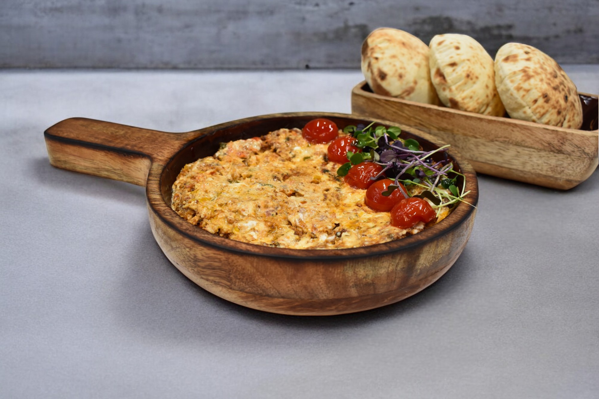 البيض الطازج والمعد بحمستنا الخاصة مع تشكيلة من الأجبان المحمرة بفرن التنور