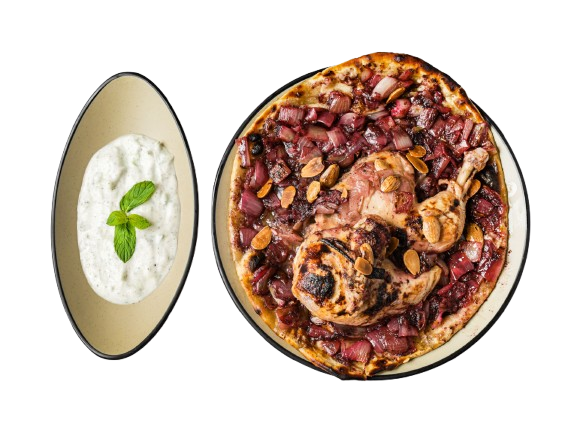 طبق دجاج مشوي مع البصل وزيت الزيتون، يُتبّل بالسماق ويُقدّم على خبز الطابون، و يُزيّن باللوز المحمّص. طبق غني بالنكهات مستوحى من البيئة الفلاحية في فلسطين