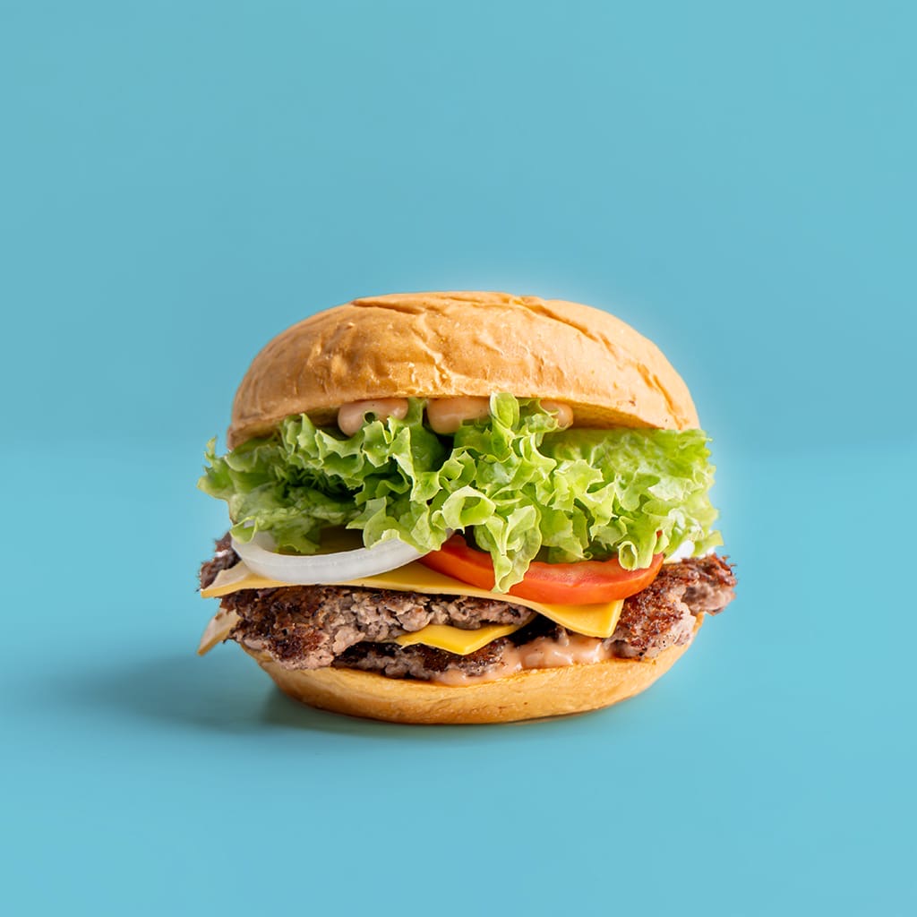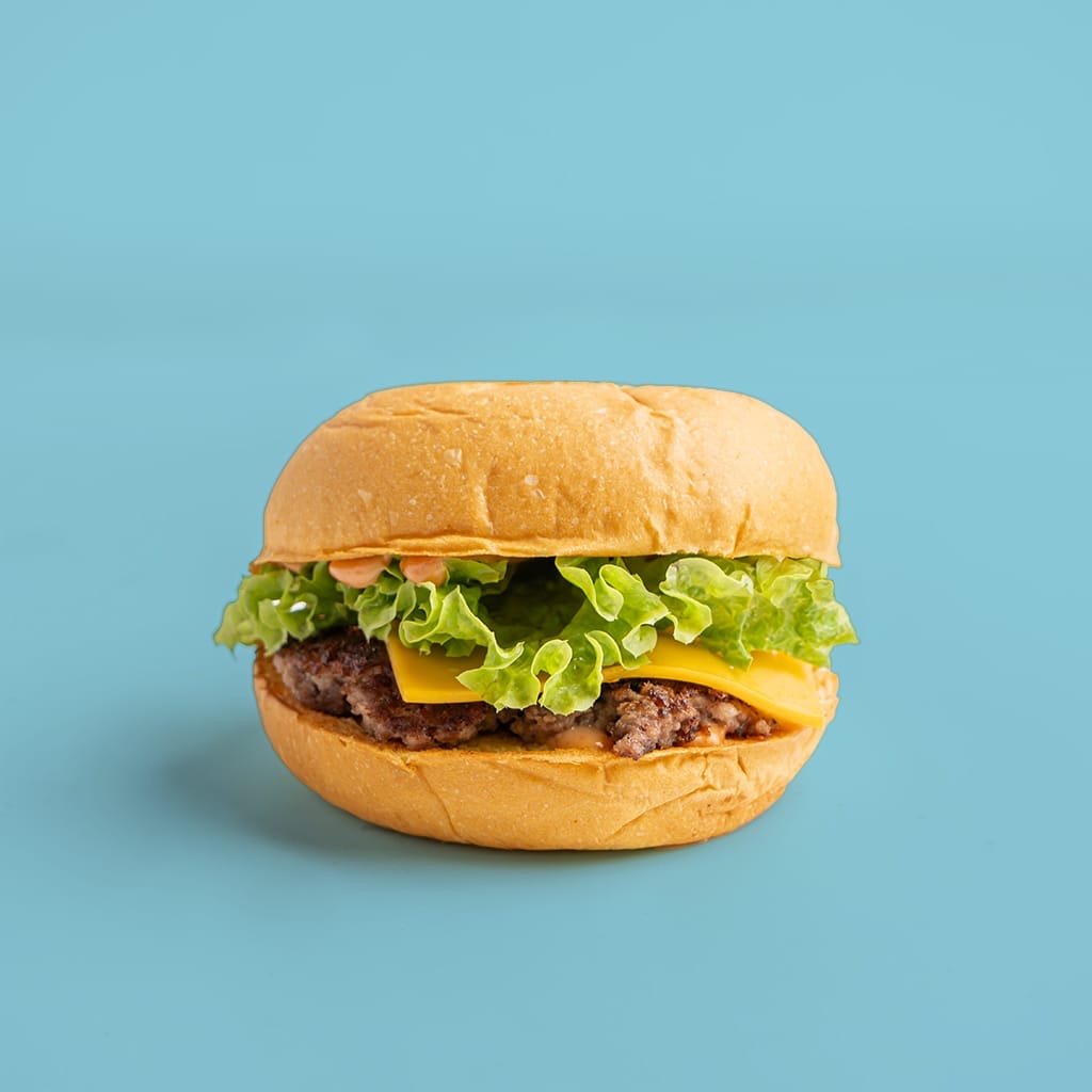 برجر لحم بقري طازج من شريحتين لحم بالخبز البطاطس