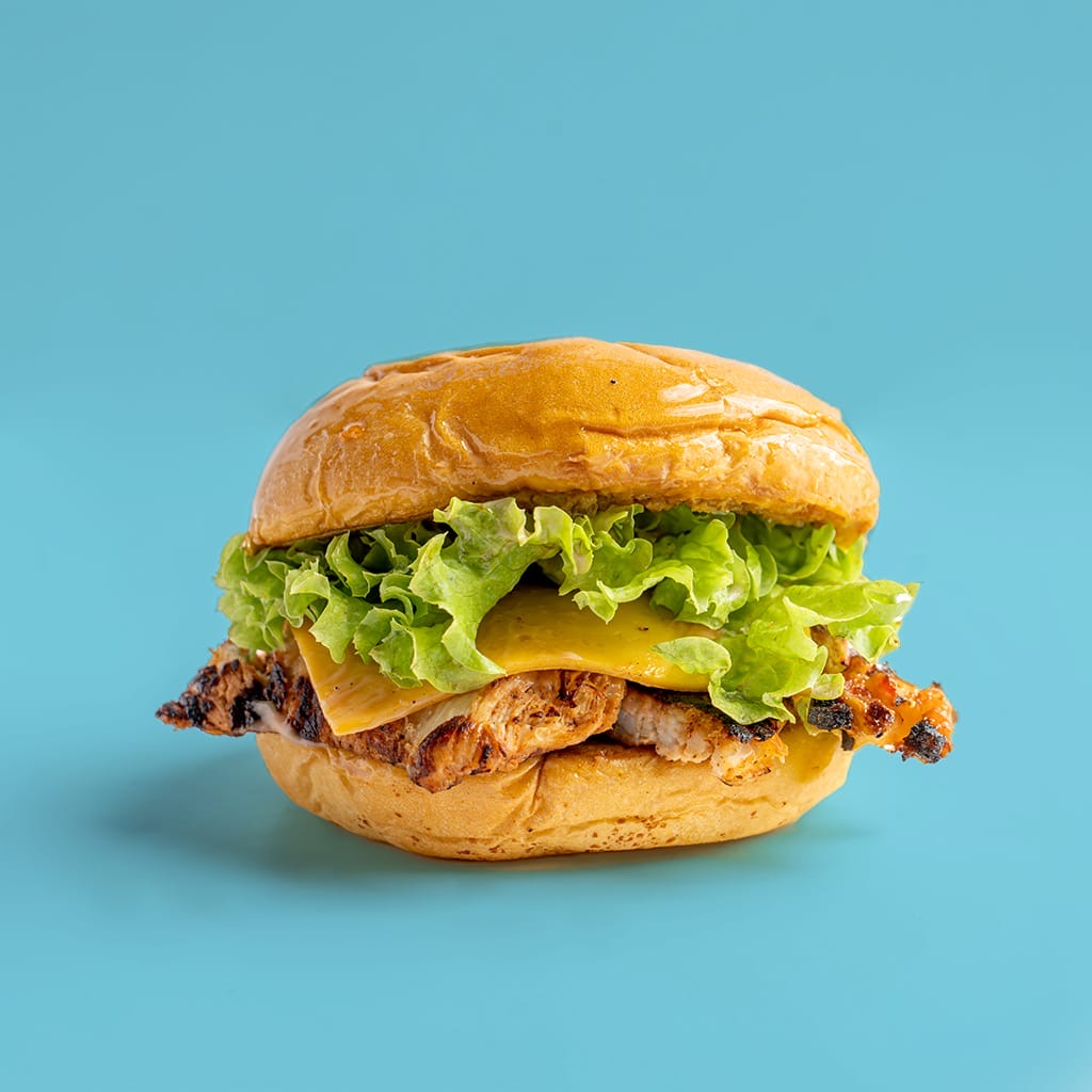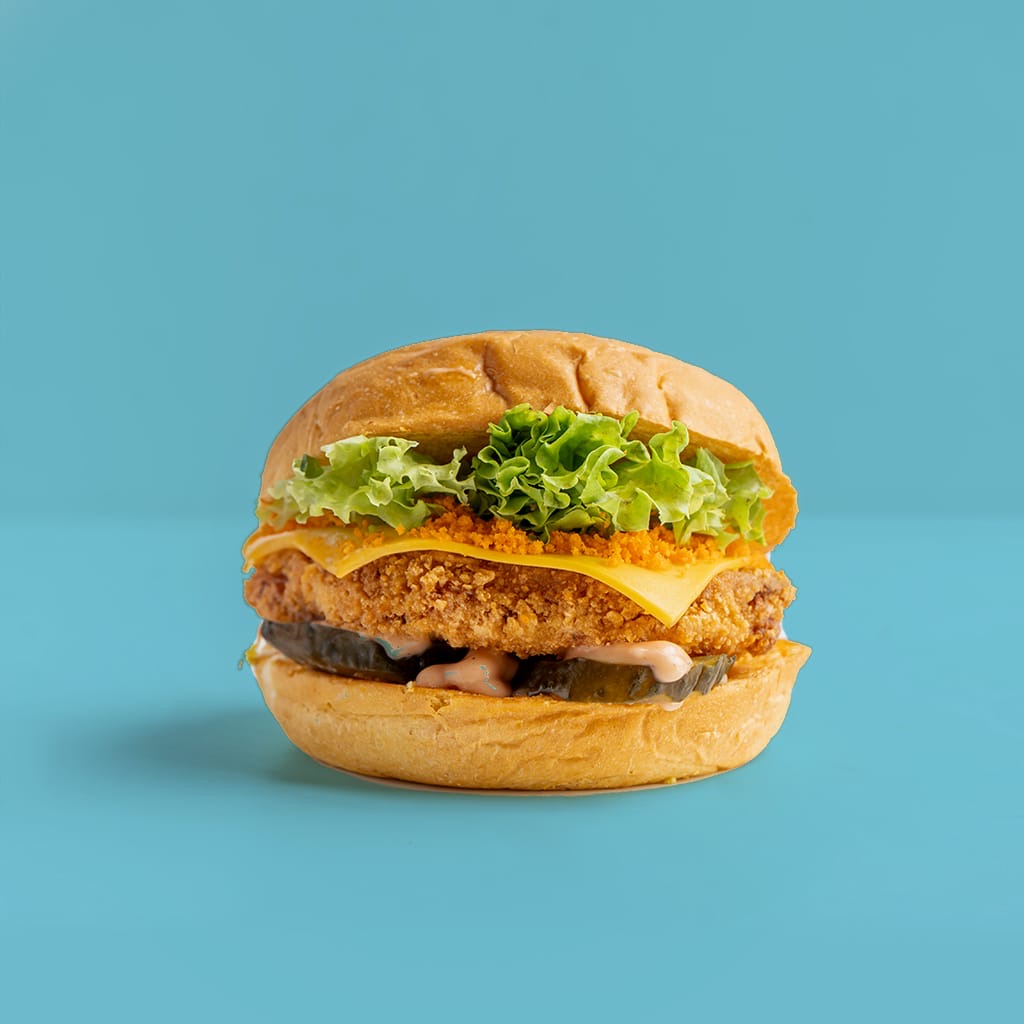 عبارة عن خبز البطاطس مع قطعة دجاج مقلية ومقرمشه مع شريحة جبن وصوص وخس