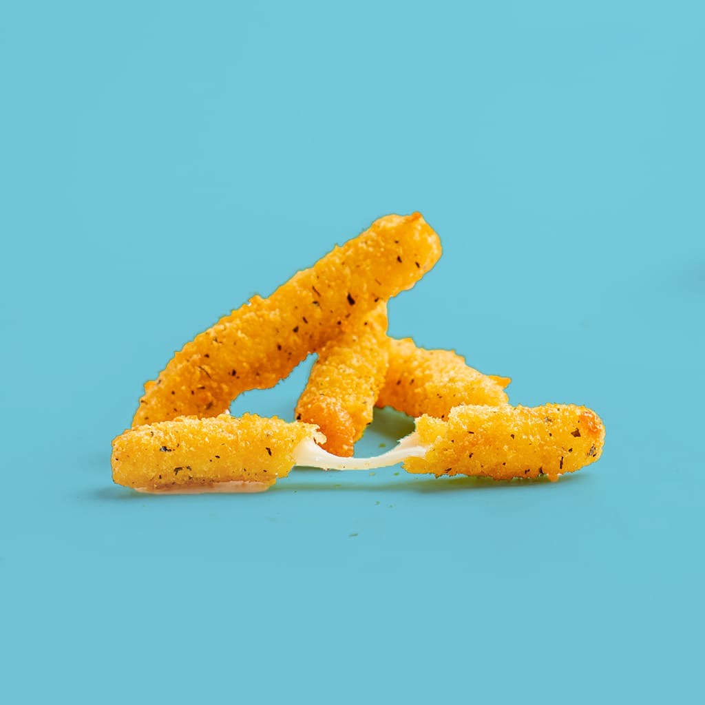 4 قطع من اصابع الجبن المقرمشة واللذيذة، محضرة من الجبن 3 الطازج ومغطاة بالبقسماط لتقديمها ذهبية ومقرمشة.