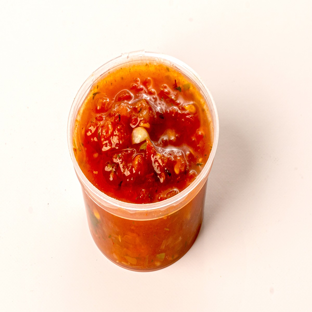 مفروم الطماطم الطازجة مع الثوم والكزبرة والبهارات الخاصة