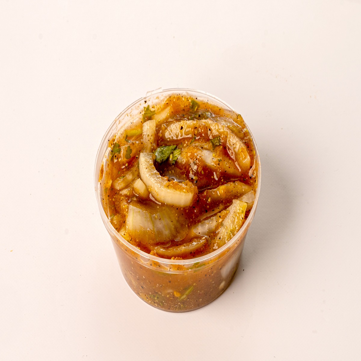 شرائح البصل مع صوص السلطة والفلفل الاخضر