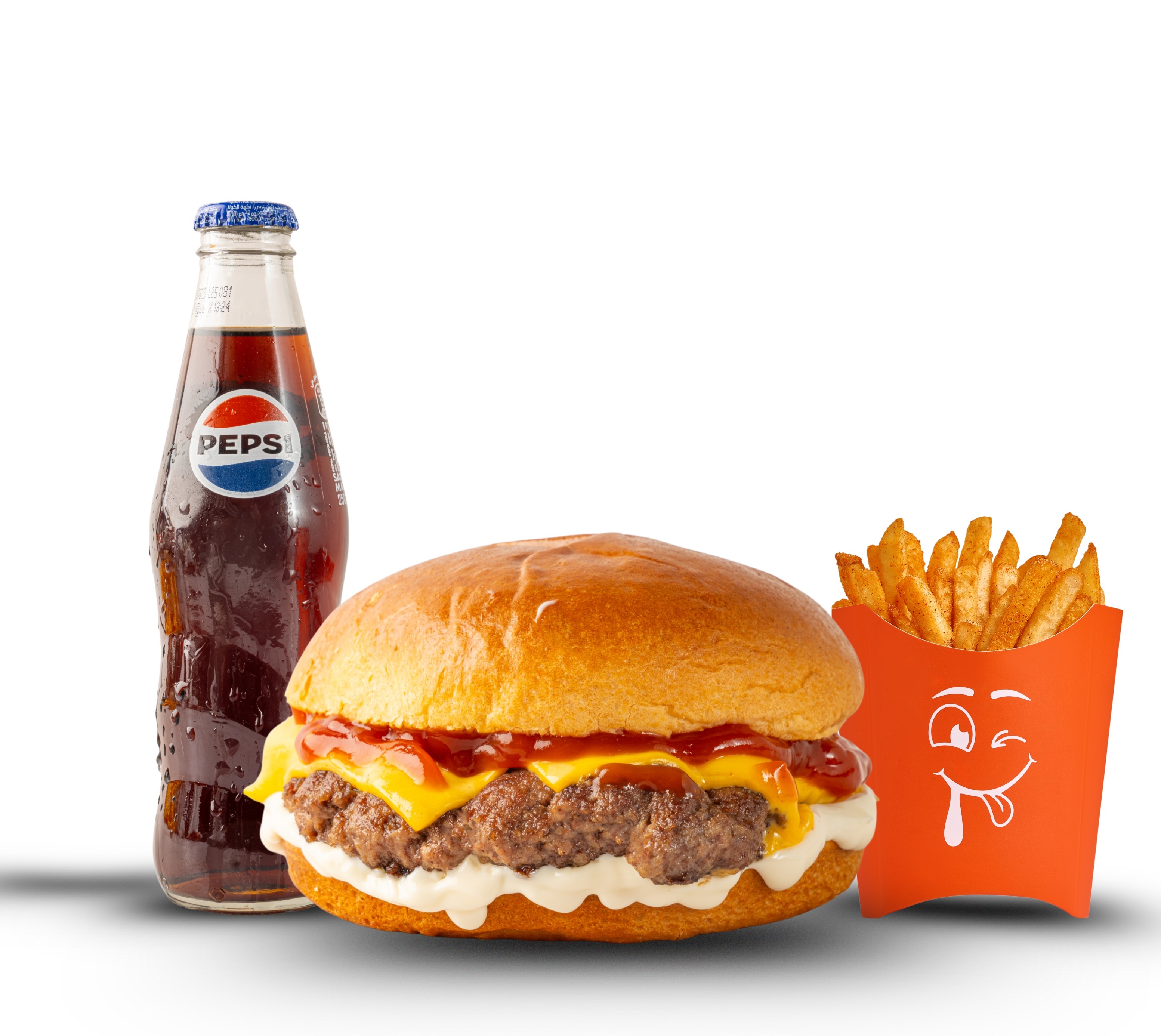 استمتع بوجبة بيف ايترز الشهية المكونة من برجر لحم مع بطاطس مقرمشة ومشروب من اختيارك لتكملة وجبتك المفضلة