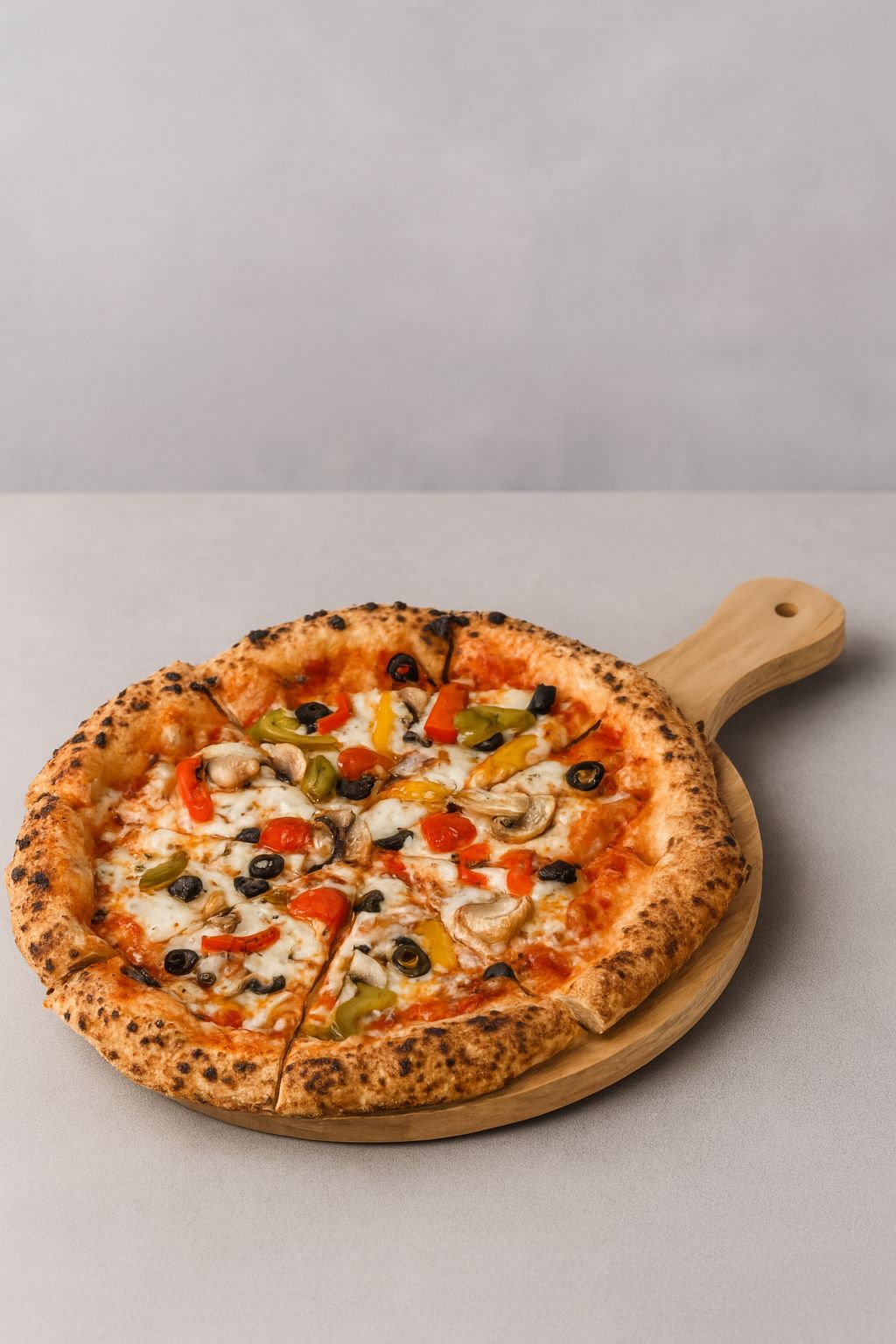 عجينة بيتزا نابولي - صوص بيتزا الخاص - جبنة موزريلا - ماشروم - زيتون - فلفل الوان