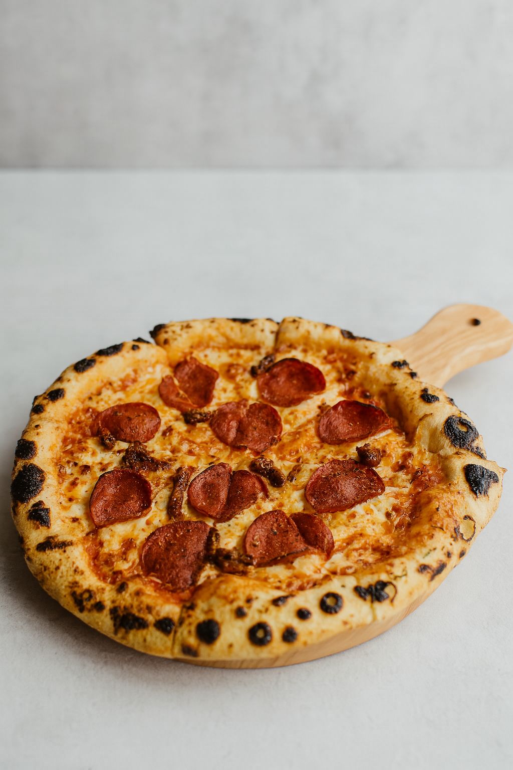 عجينة بيتزا نابولي - صوص بيتزا خاص - جبنة موتزريلا - ببروني - طماطم مجففة