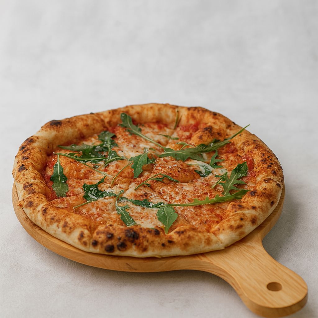 عجينة بيتزا نابولي - صوص بيتزا خاص - جبنة موتزريلا - جرجير ايطالي - جبنة بارميزان - دبس رمان