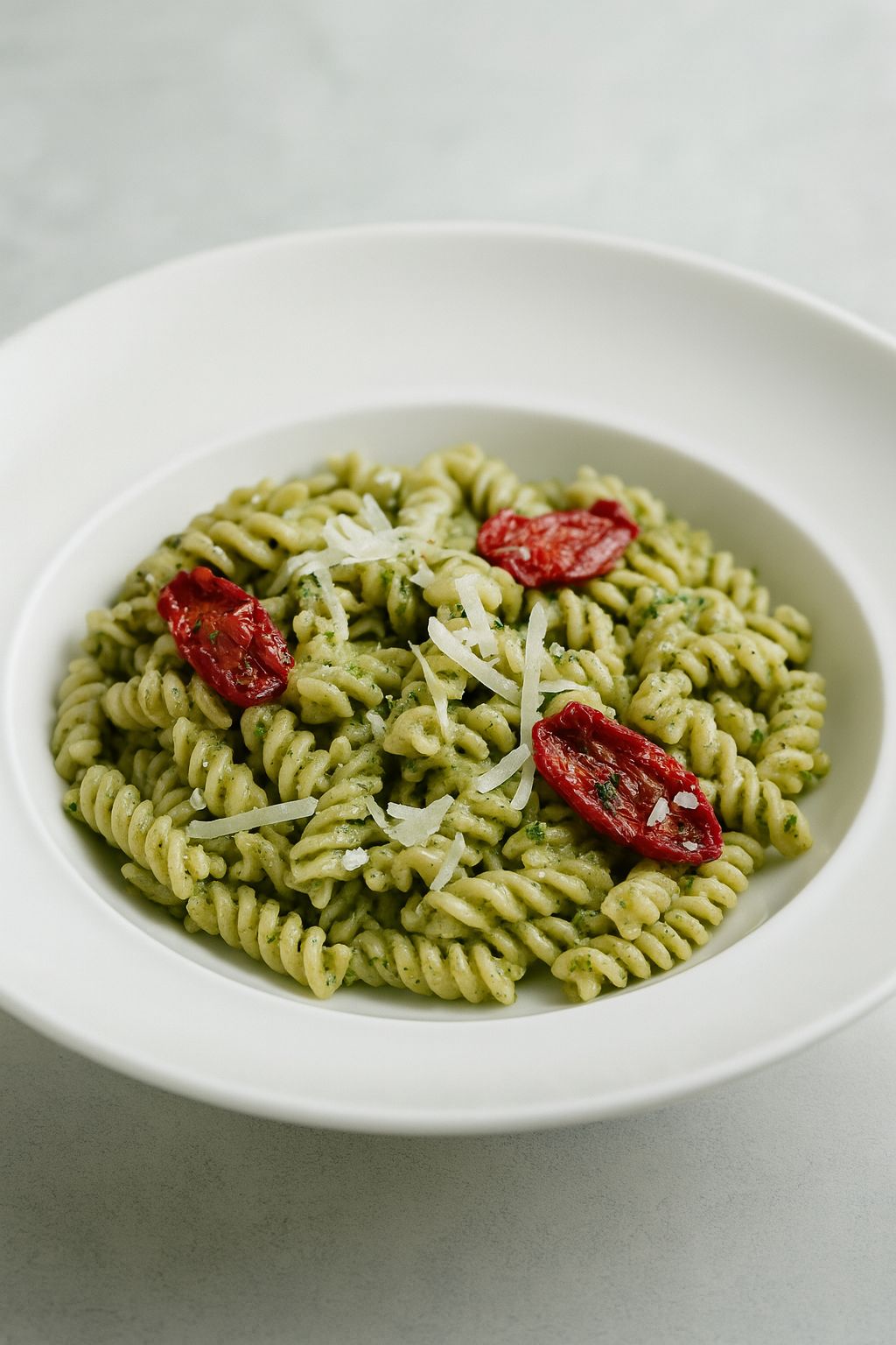 معكرونه فيوزيلي - بيستو صوص - دجاج - طماطم مجففه - جبنة بارميزان