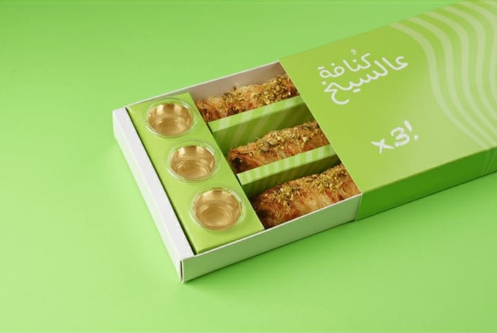 3 اسياخ كنافة بالجبن والفستق الحلبي مشوية على الفحم 3 skewers of kunafa with cheese and pistachios, grilled over charcoal